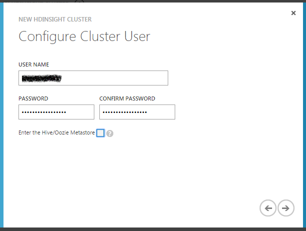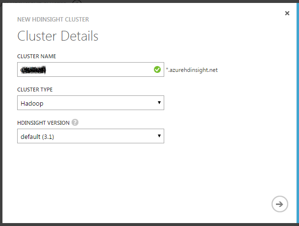 Click on Create an HDInsight Cluster arrow to start the wizard.