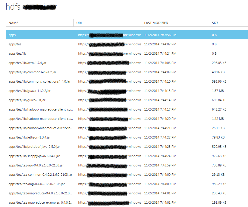 If you click on the container name to open it, you can see several files and folders that are created by default in the cluster: