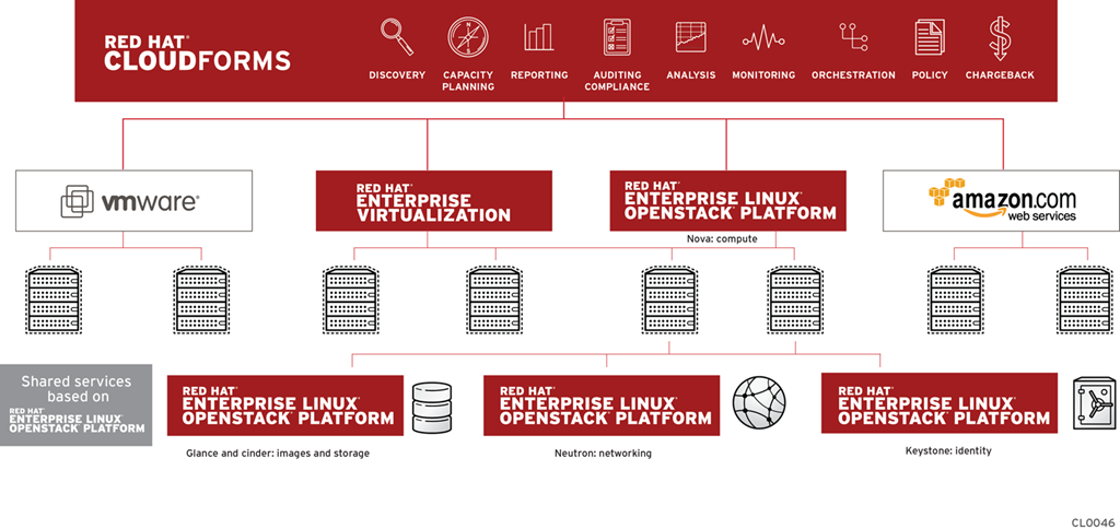 We could define OpenStack like a cloud operating system that controls large pools of compute, storage, and networking resources throughout a datacenter, all managed through a dashboard that gives administrators control while empowering their users to provision resources through a web interface. We could use it to integrate both our private and our public Clouds using Red Hat solution: